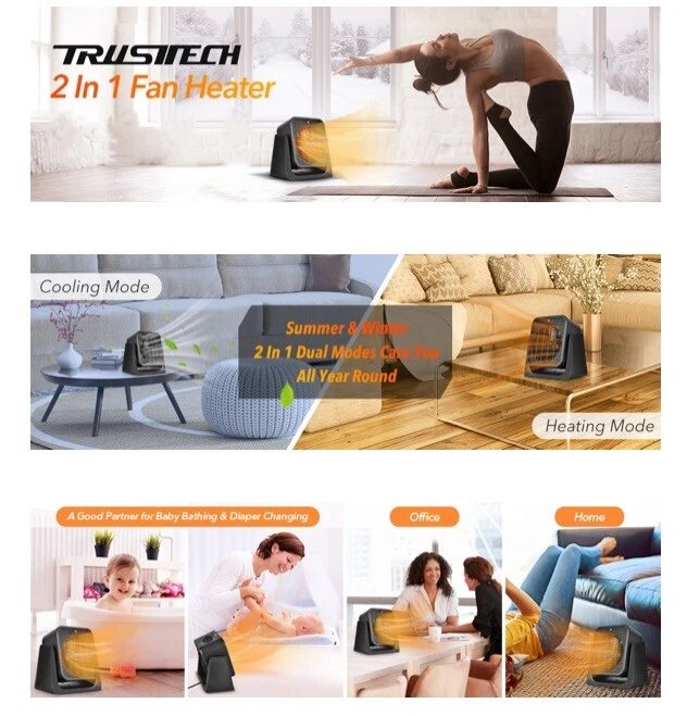 | Special Feature | Personal Ceramic 2 in 1 fan for Bedroom, Portable, Small Electric Space cooler Fan for Office, cool air fan for outdoor use, dual fan and heater with Overheat Protection |